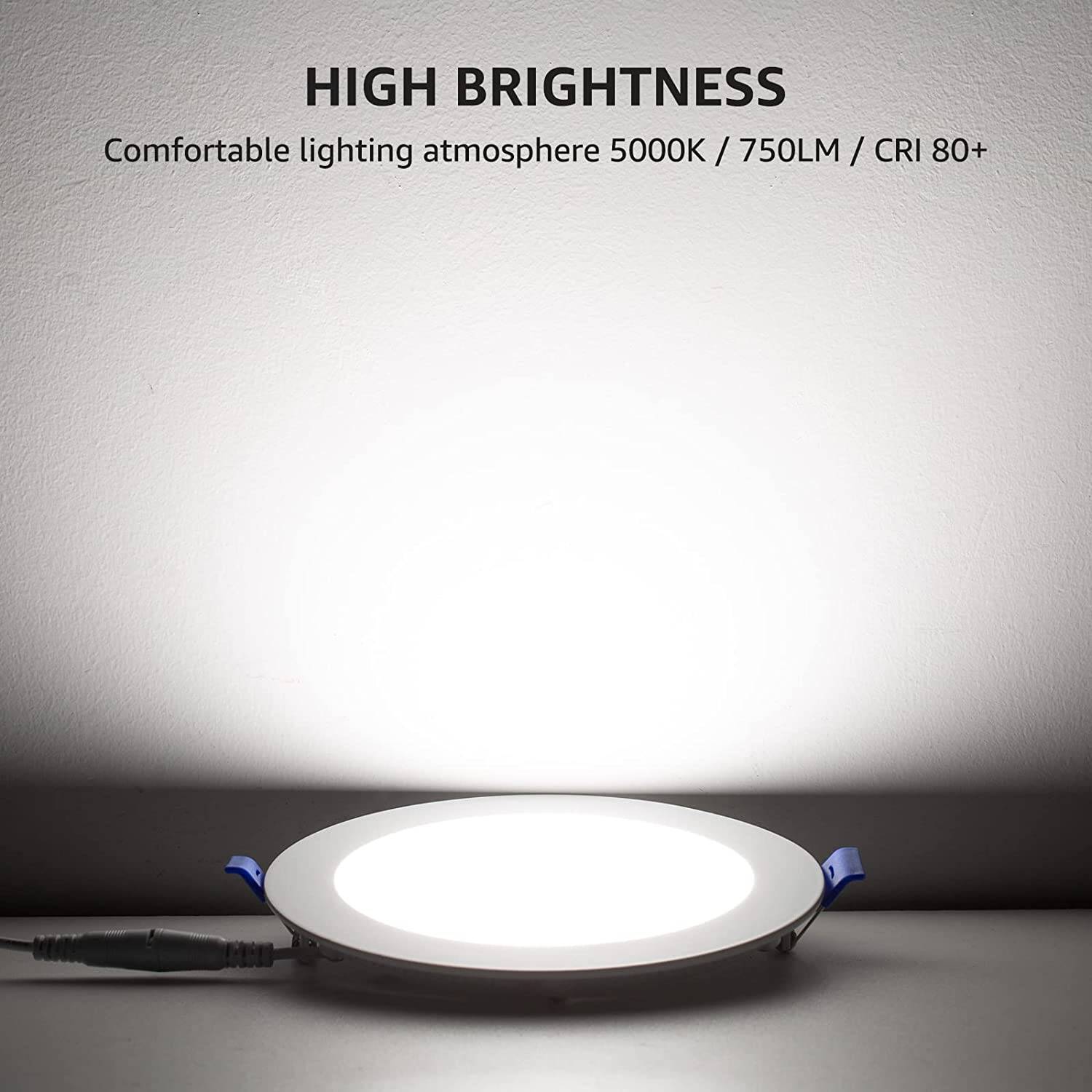 Flicker Free: Benefit from the latest LED technology for maximum eye comfort. This Energy Star certified LED recessed lighting only consumes 10 watts of power while providing 750 lumens of brightness, equivalent to 60-watt incandescent lamp and saves over 80% on electricity.