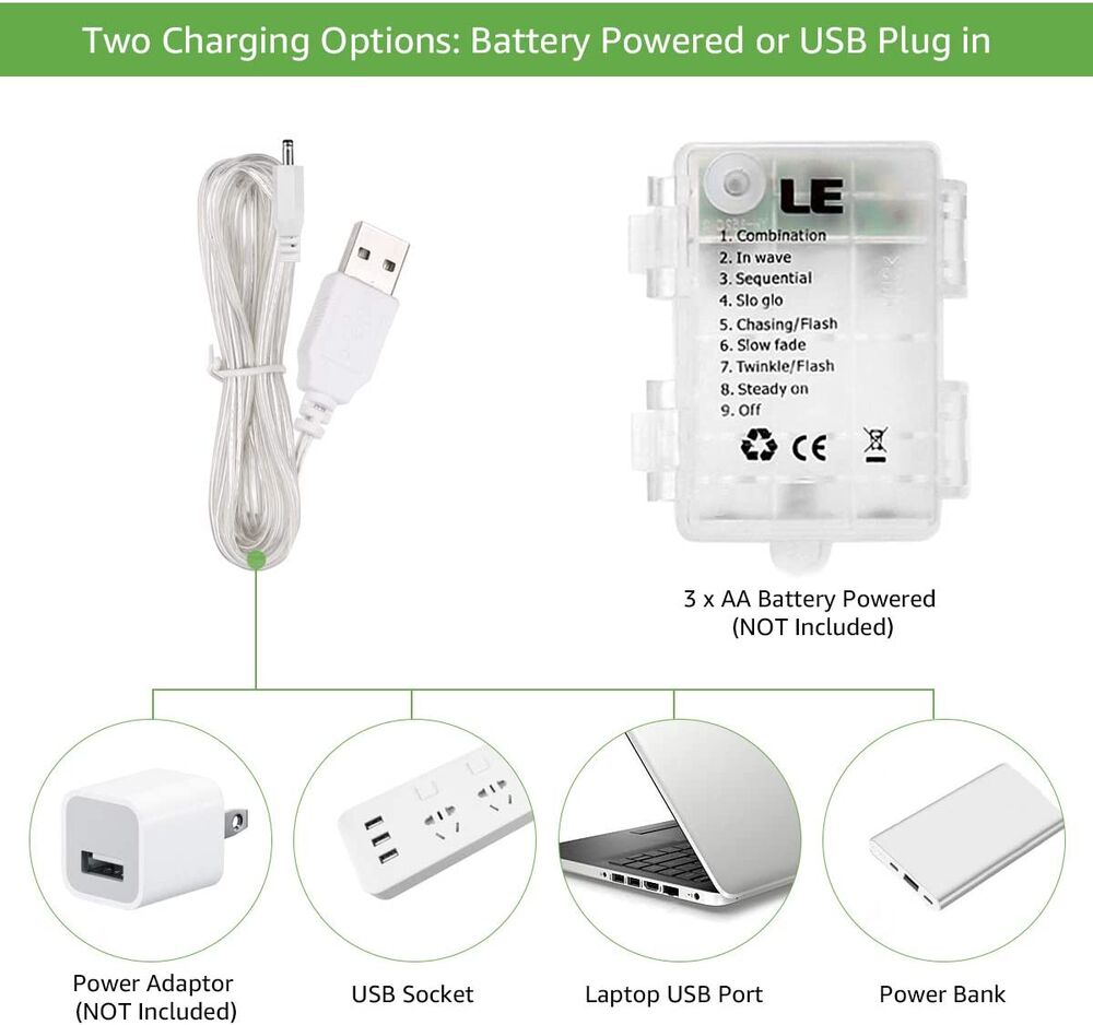 - Plug in. with an extra USB adapter (NOT included), you can also plug in this USB fairy light to any outlet.