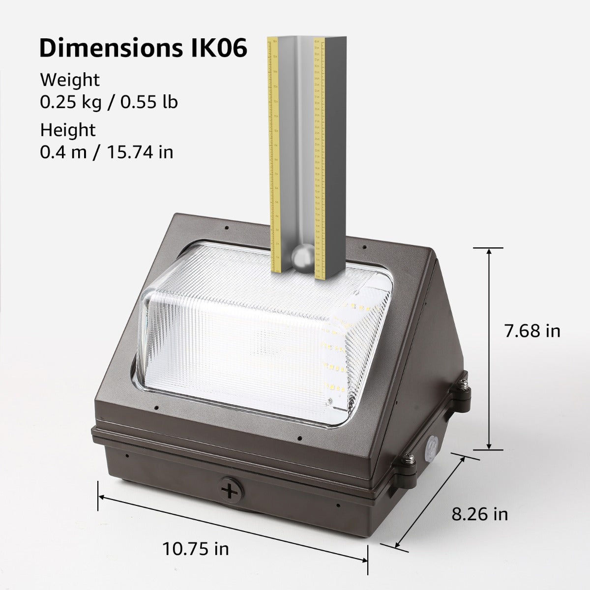 5-year Warranty & Long Lifespan: These 40W outdoor wall pack lights are built comprising a die-cast aluminum body and a commercial-grade powder-coated bronze finish as well as impact-resistant tempered glass and a maintenance-free LED. They are waterproof and have an incredible lifespan of up to 50,000 hours – even having them turned on for 8 hours per day would still give you more than 17 years of usage! Additionally, we offer a 5-year warranty on all our products.