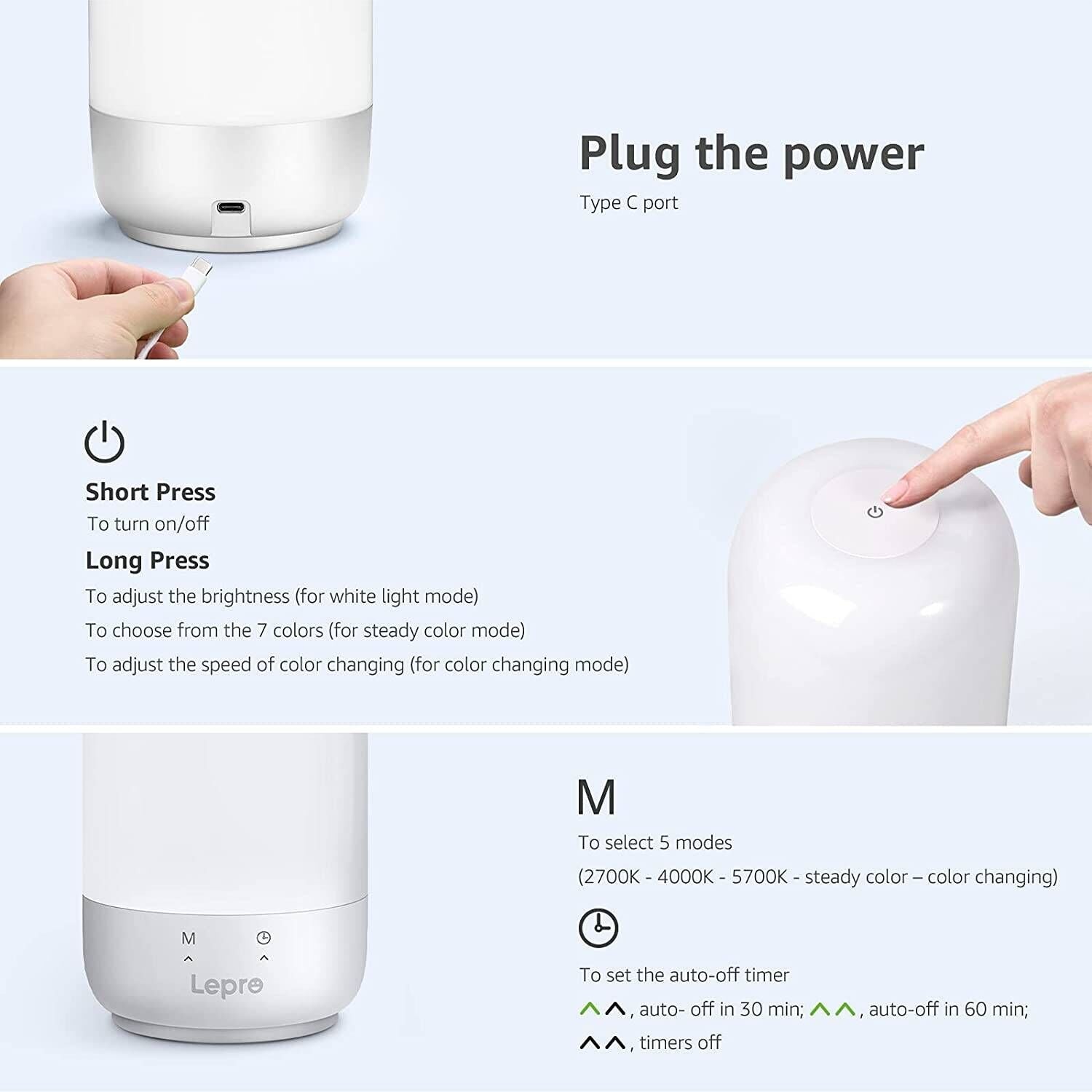 - tap the left key of the bottom to choose from 5 light modes (2700K-4000K-5700K-steady color-auto color changing)